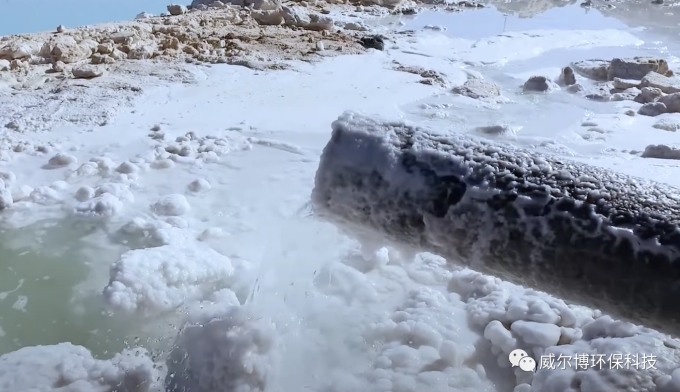 在卡門鹽水湖,沒有壯觀的白色荒漠,只有一連串高聳的圓柱體,還有幾個池子,以及一排排隆隆作響的機器。